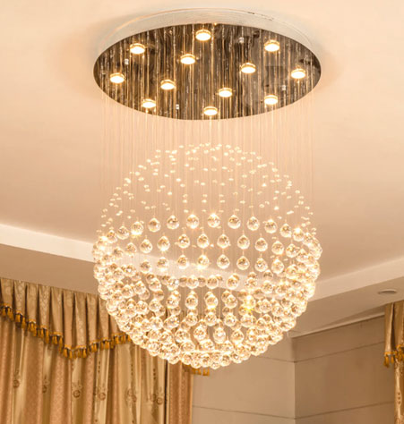 Ans.Chandeliers can be installed in most rooms, including dining rooms, living rooms, foyers, and bedrooms. However, ensure the chandelier suits the room’s size and aesthetic. For kitchens, small or medium-sized chandeliers work well, while larger foyers or ballrooms can support grand, multi-tier designs.
